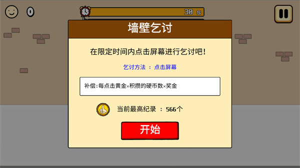 4、在限定时间内快速点击屏幕,尽可能多地获取路人施舍;