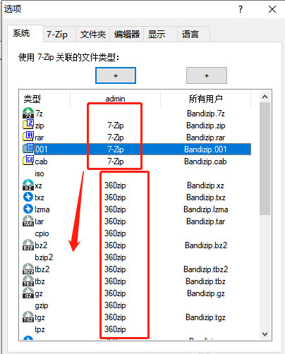 然后在打开的窗口界面中,点击上方中的"系统"选项卡,并在其中找到需要设置类型,点击右侧的压缩选项,将其切换为"7-zip"。