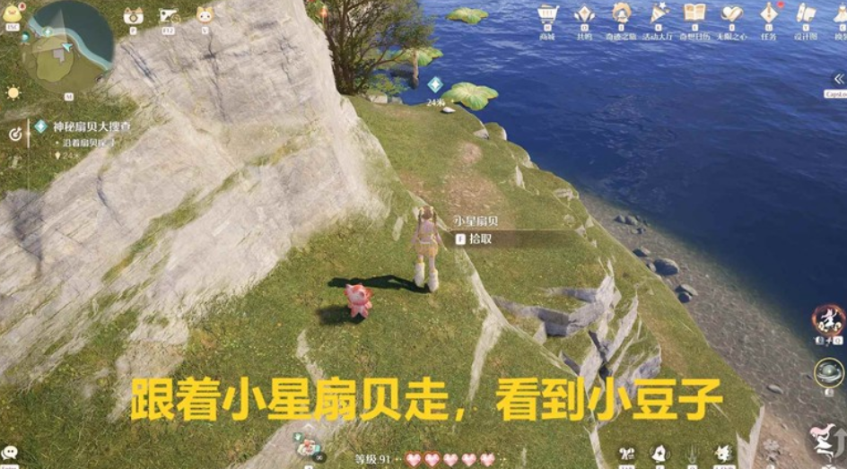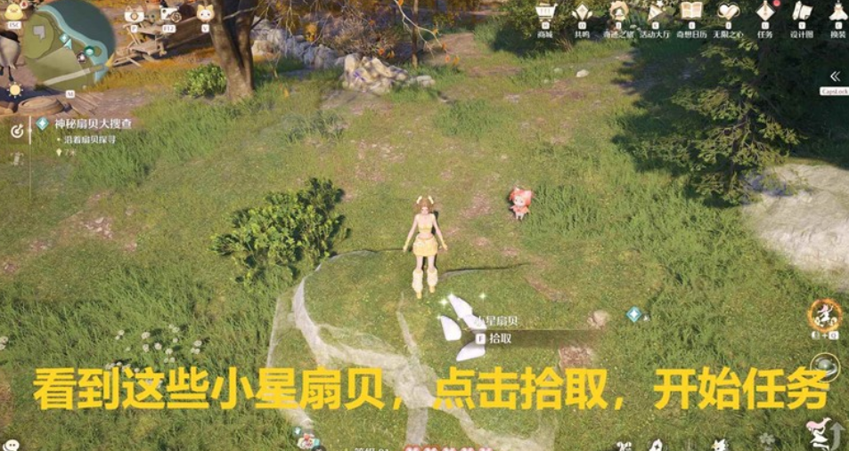 我们靠近小星扇贝,点击拾取,开始任务;