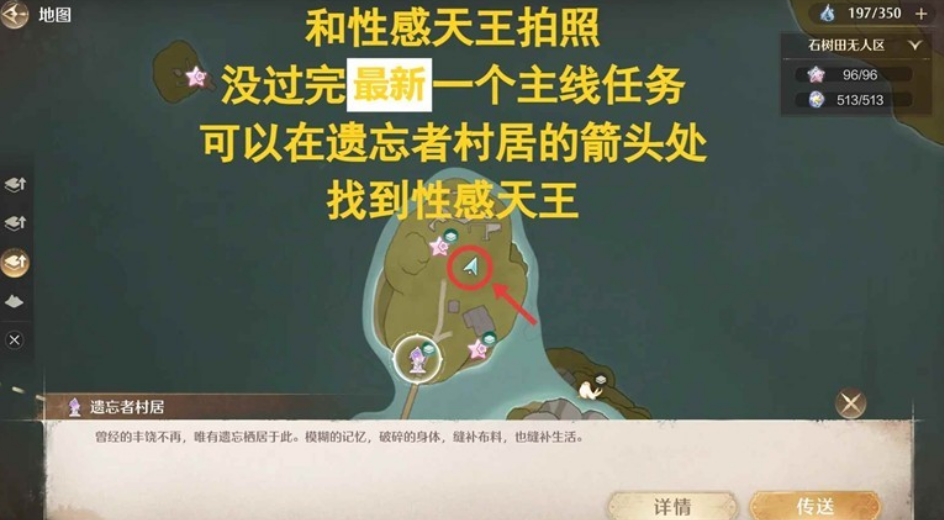 没做行李箱里的罪恶主线,可以到遗忘者村居锚点附近找到 性感天王,与它合照,出现两道金色框即可;