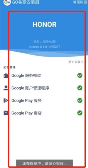 依次准备套件。根据提示进行就行了,主要包括Google服务框架,Google账户管理和程序,GooglePlay服务,GooglePlay商店,依次安装好之后,退出软件。