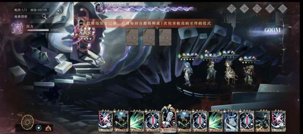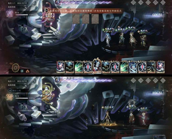 最先开始试了梅兰妮,发现不好打,后面换了圈凹过了……也没那么简单…大概是在第4回合开大,后面是5/6回合自动开大,以此类推…可以对照对面的压力值看看进度是否正常(压力40%对应打了40层,压力90%的时候应该才70-80,野树莓保住全队一次后,再开大差不多就结束了,建议诺谛卡满增幅满共鸣,我的诺谛卡是0塑共12心相没增幅)