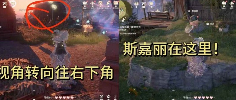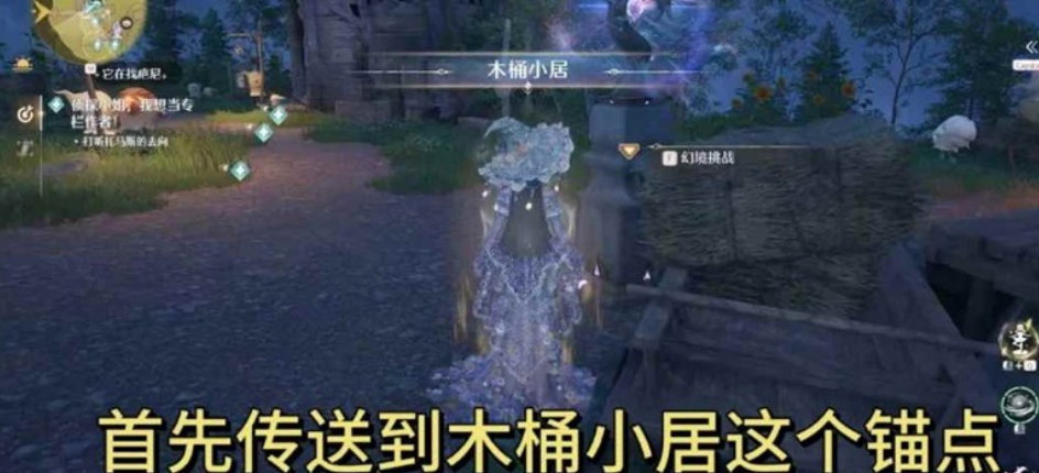 首先传送到木桶小居这个锚点 然后往地图右下角看 一直往右下角走如图木桶前面就可以看到斯嘉丽然后触发【侦探小姐,我想当专栏作者】这个逸事了