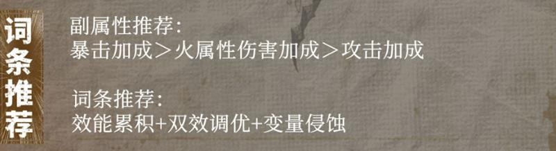 赤荒的持续增伤与赤痕的暴击爆发形成良好互补,两人在技能循环上也较为契合。赤痕依靠技能频繁触发暴击加成,配合词条选择调优与连锁破坏,可进一步放大输出数据。而赤荒则在后台持续叠加增益,一旦进入高层数状态,即可在关键时刻打出毁灭性伤害,配合引力压制与毁灭增幅等后期机制,对敌方阵容形成压制。