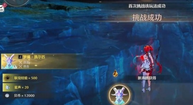 当角色稳定落在湖面后,梦魇·凯尔匹便会从水中现身。这个声骸外观呈现半透明状,带有流动的暗色纹路,行动方式较为独特。玩家需要与其展开战斗并成功将其击败。战斗过程中需注意其释放的范围技能与移动轨迹,合理运用闪避与输出节奏。击败后系统会自动结算奖励。