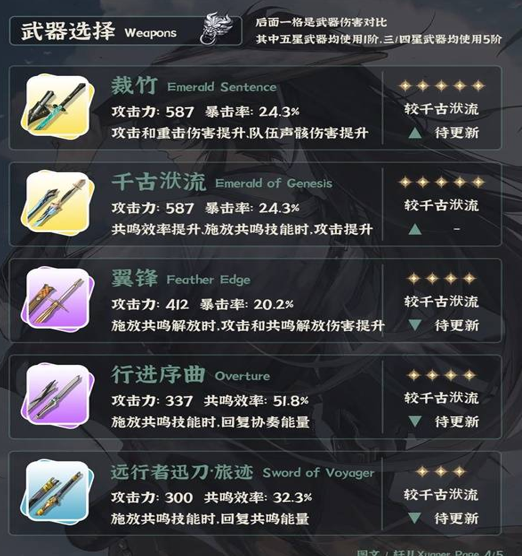仇远武器首选专武裁竹,其余武器可以考虑加共鸣效率的武器。