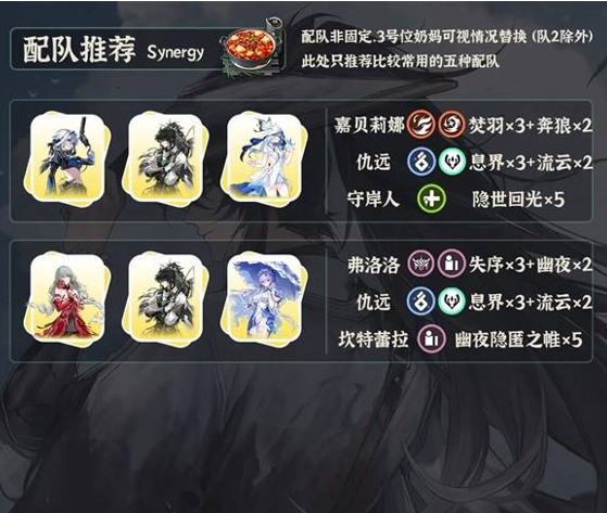 仇远当前主要和嘉贝莉娜组队,其次可以考虑弗洛洛队代替洛可可。