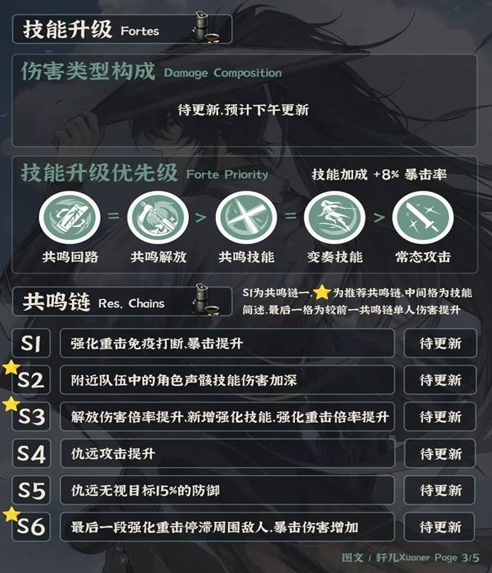 仇远主要输出类型为重击伤害和声骸技能伤害。共鸣链推荐抽取2/3/6链,2链可以增强主C的声骸技能伤害,3链大幅提升个人伤害,若想用仇远主C,建议3链。6链增加5秒控制,机制不错,可选可不选。