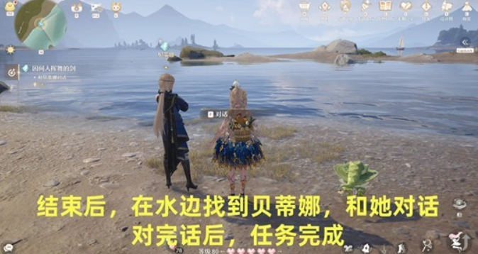 对完话后,跟随指引,找到在水边的贝蒂娜,和她对话;