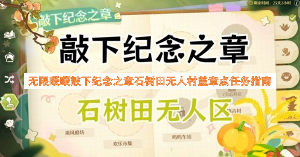 《无限暖暖》是一款跨平台开放世界换装冒险游戏,在纪念之章活动中,有许多玩家不清楚石树田无人村的盖章点在哪里。本文小编将为玩家们带来详细的盖章点攻略,助玩家们能轻松完成活动任务!