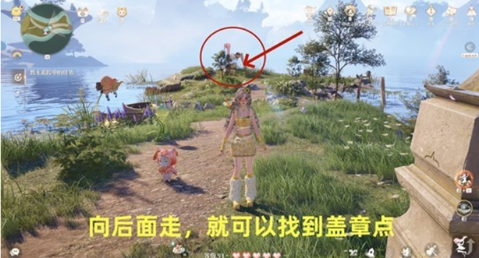 传送到 麦田旁 锚点,向右边转,跳到上一层,继续向前走,就可以找到盖章点;