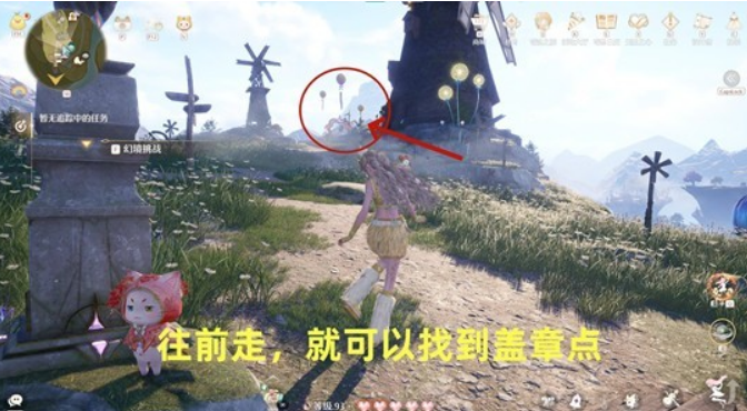 传送到 乘风磨坊顶端 锚点,往前走,就可以找到盖章点;