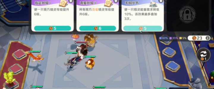 包括因缘师可以给大家组配的情况还是比较多的,在这里不同的场次当中大家如果连胜达到一定的数值,还可以解锁更多的场内技能可选用,包括上阵的精灵人数也是按照不同场次来解锁更多的,所以打到后期会越来越难,但是大家可以搭配的精灵也会越来越多,如果是新手参与这个晋级赛玩法的话,其实小编是比较推荐大家用饱足流的,因为目前饱足流的精灵比较所,很多的场内技能也比较符合这个流派需要的能力。