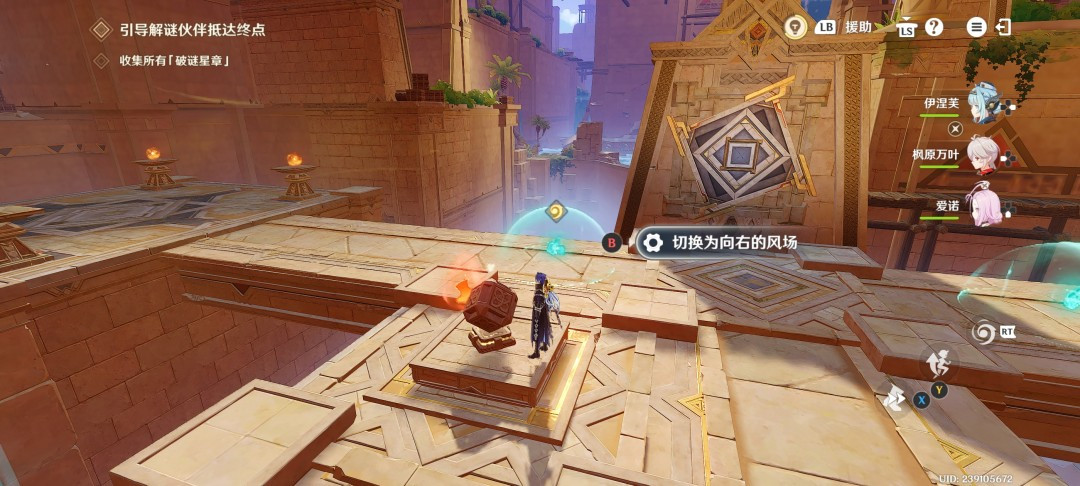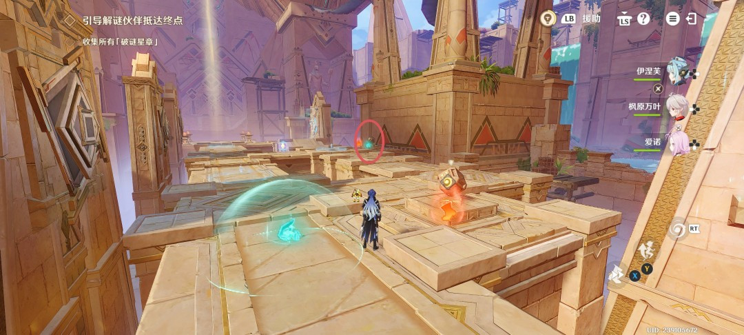 开始挑战后,移动到机关附近,将[升腾奇效]拾取并放置在一旁最近的基座上;