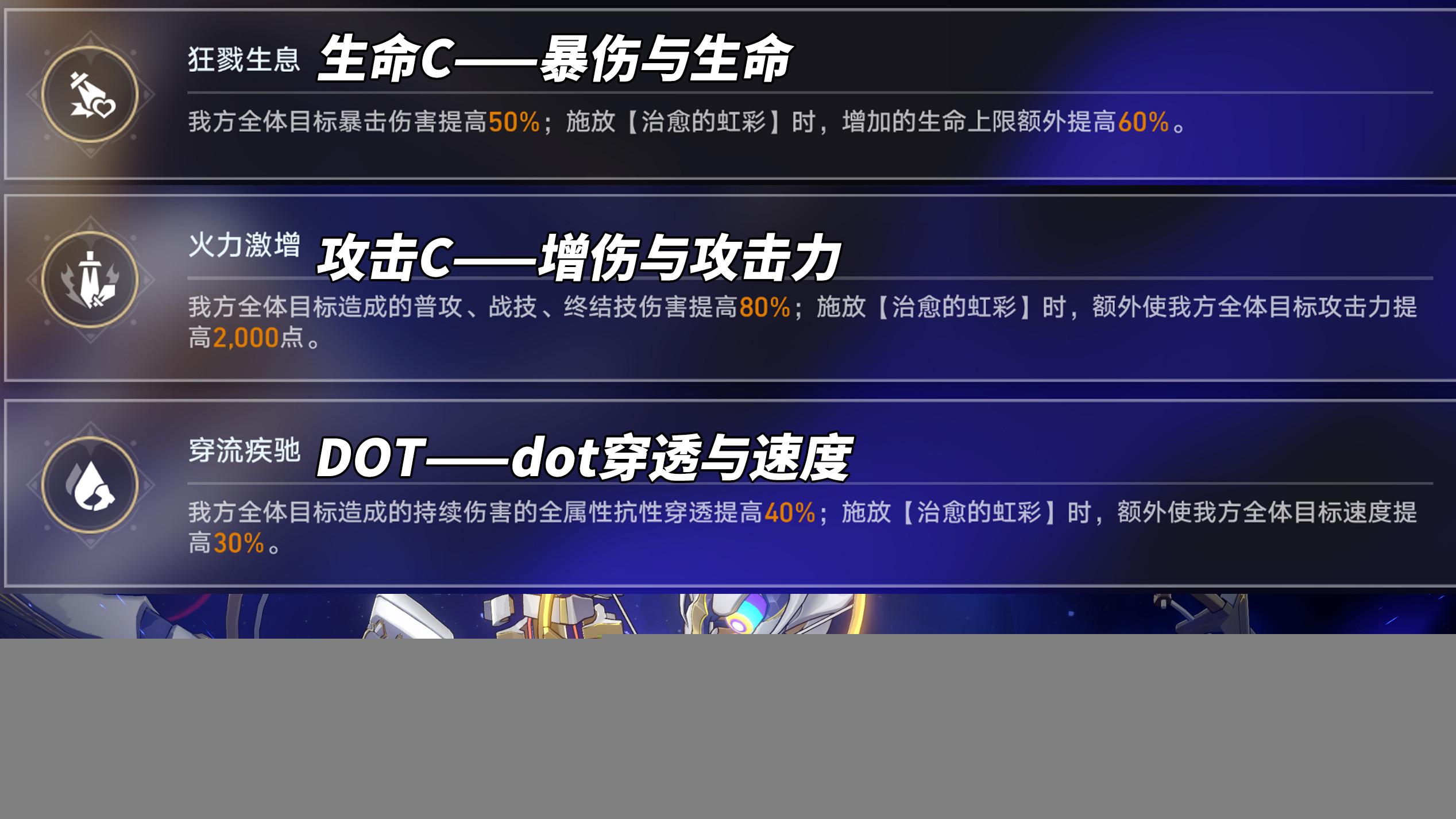 提升敌我双方造成的伤害,效果与温度类似,敌方行动增长,我方行动与消灭造物会削减。此外行动条会出现风堇支援技,可触发开局你给队伍选的BUFF,此BUFF可不断叠加,若不追求3星可适当延后爆发,提高输出~