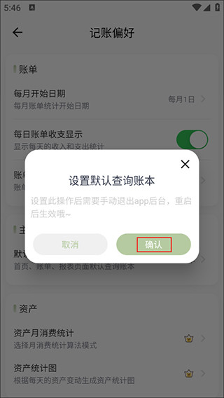 最后弹出设置默认查询账本的窗口上点击点击“确认”隐藏账本即可。