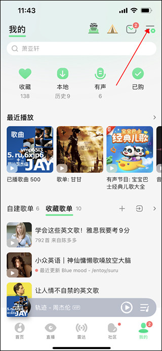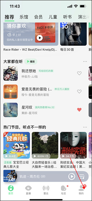 打开qq音乐app,进入app首页,点击页面右下方的“我的”按钮;