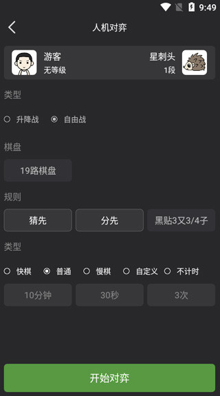 2、自由对弈中,执黑执白、用时等任你挑选,想怎么玩就怎么玩。