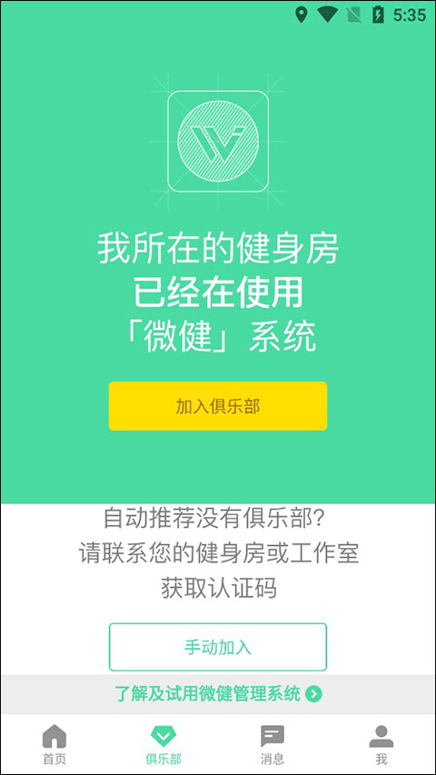 3、如果无法通过这种方式获取就点击界面的手动加入,通过扫描健身房或者工作室提供的认证码加入俱乐部。